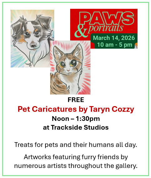 Free pet caricatures noon-1:30pm with Taryn Cozzy. Learn about her pet commissions, too!
