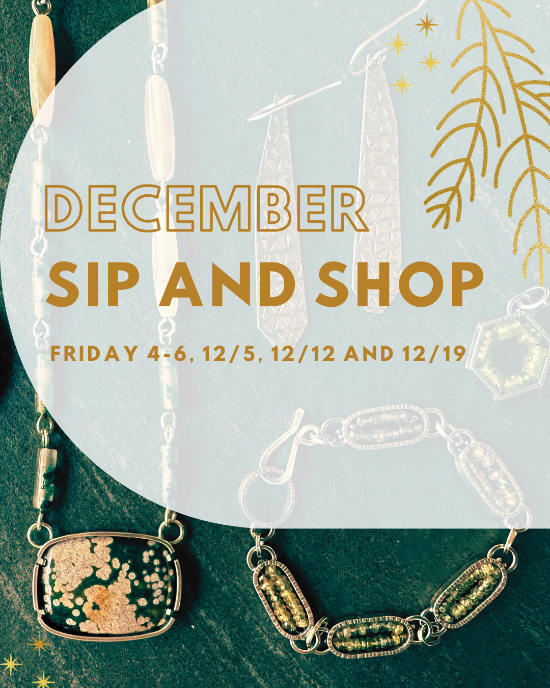 Come by for a signature drink (spirited and non), beautiful jewelry and art. This is the perfect opportunity to find unique handmade gifts for the holidays and to support local artists.